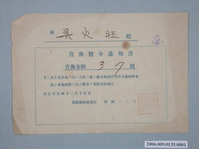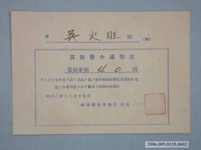 吳火旺日治至戰後初期鐵道任職履歷文書組