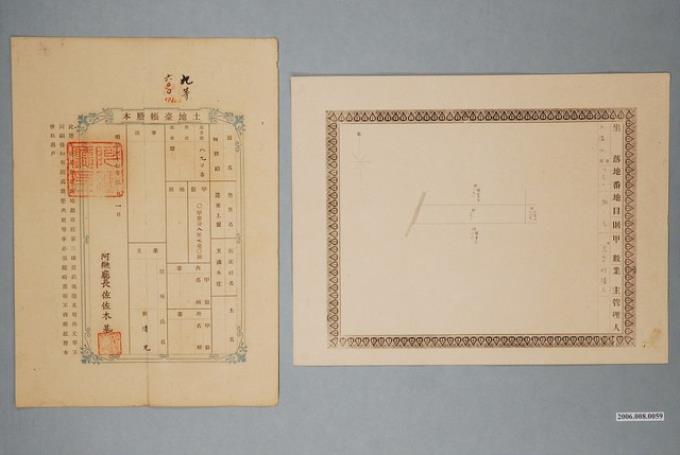 明治37年3月1日給業主劉清元阿猴廳港東上里五溝水庄土地臺帳謄本及地籍圖謄本〈五溝水庄890地號〉