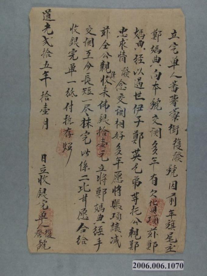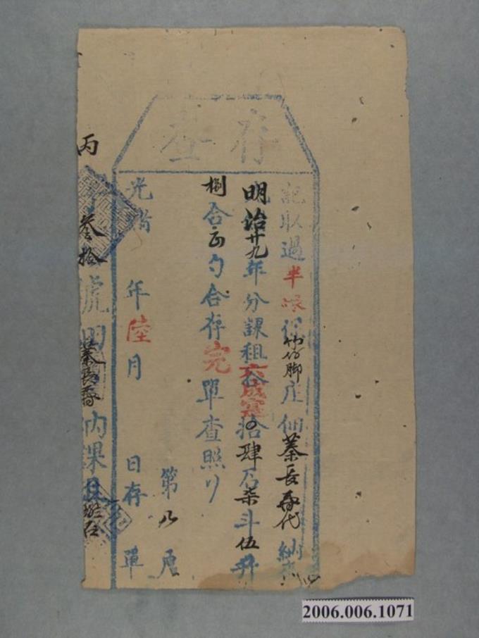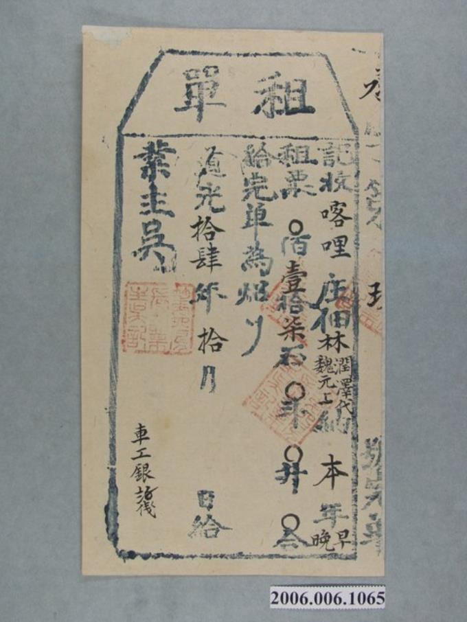 明治29年半線保竹仔腳庄佃秦長春納租存查單