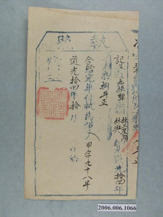 道光14年業主廷陸昌給佃戶林三及林興執照