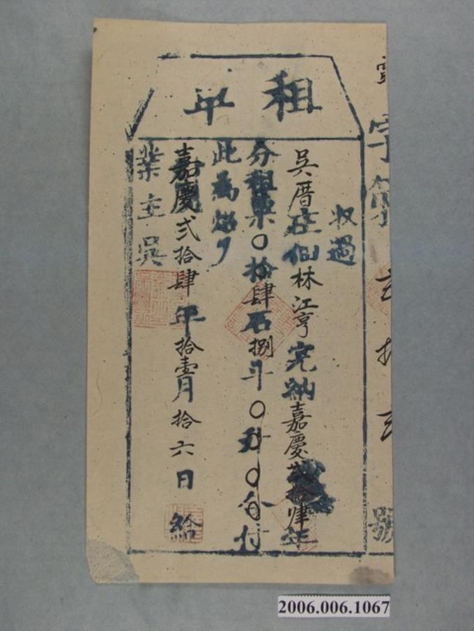 嘉慶24年業主吳給吳厝庄佃林江亨完納租單