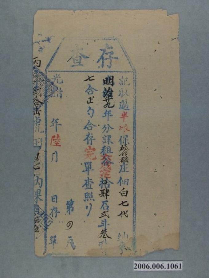 明治29年半線保磚仔磘庄佃白七代納租存查單