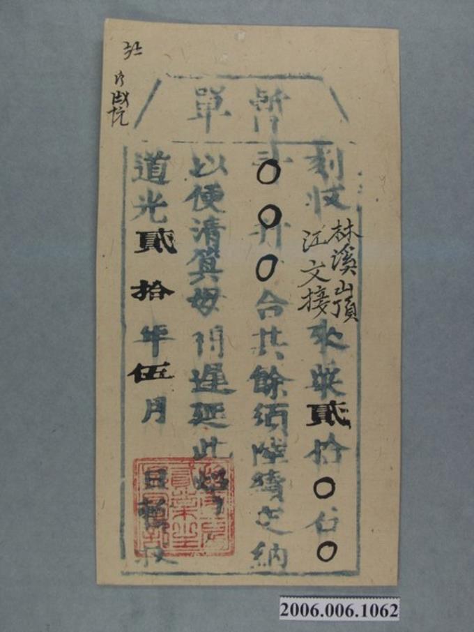 道光20年林溪山頂江文接繳納租粟所收暫單