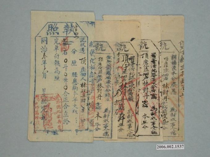 咸豐同治年間德化社總業戶與淡水分府等給林對丹執照五張