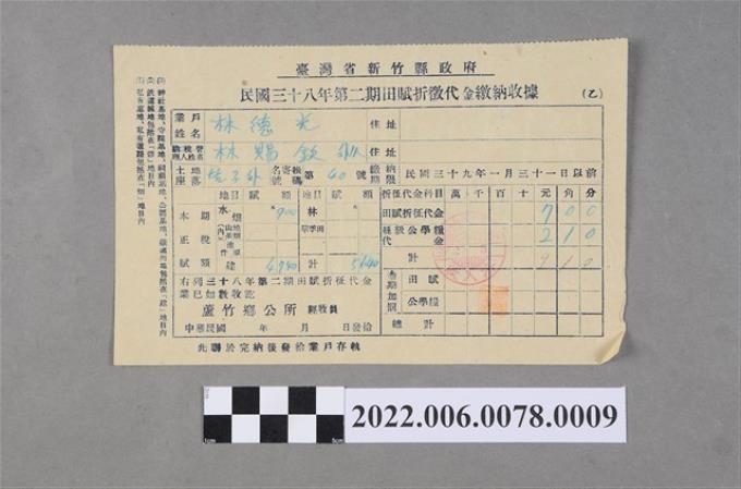 林德光民國38年度第2期田賦折徵代金繳納收據第40號