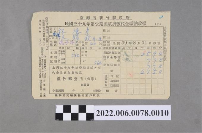 林德光民國39年度第2期田賦折徵代金繳納收據第40號