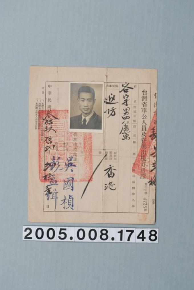 民國39年警備總部臺灣省軍公人員及眷屬出境許可證