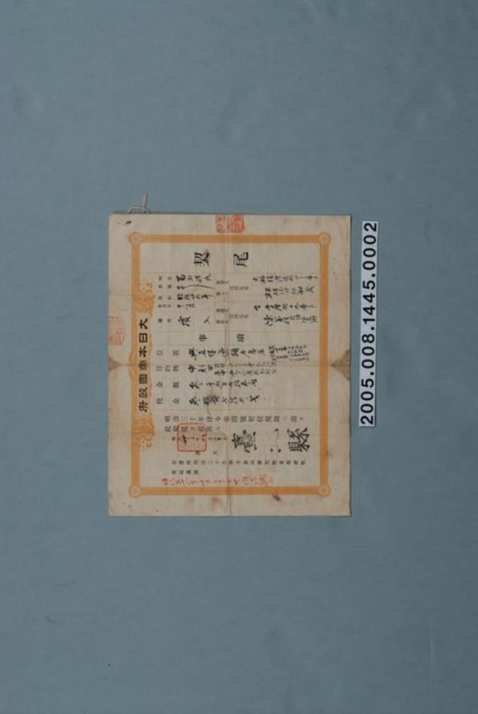 福建臺灣布政使司發給淡防廳淡水保興直庄胡德契尾