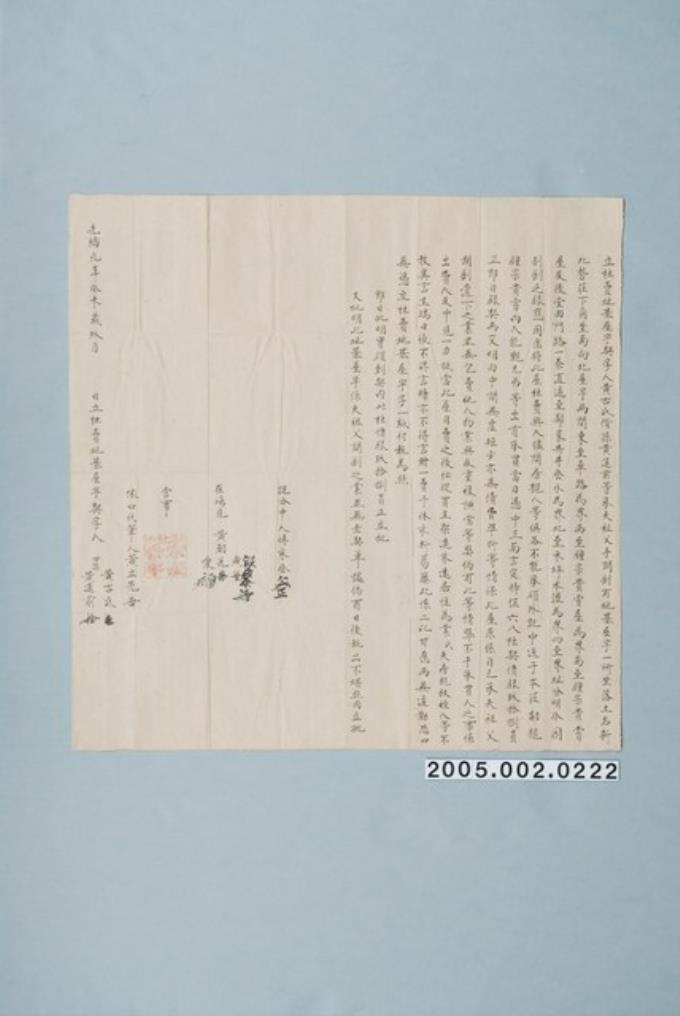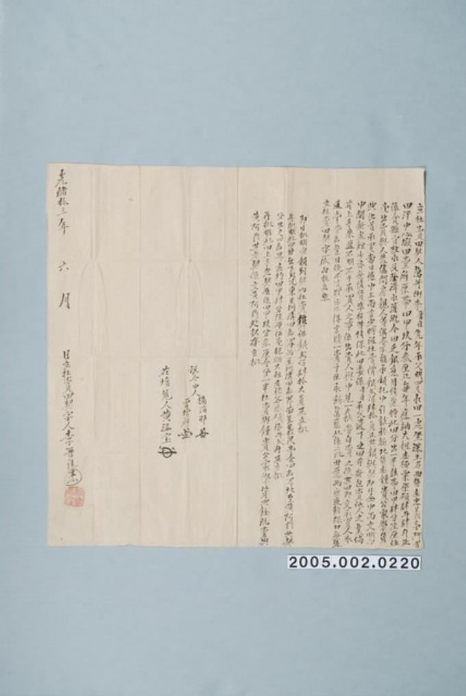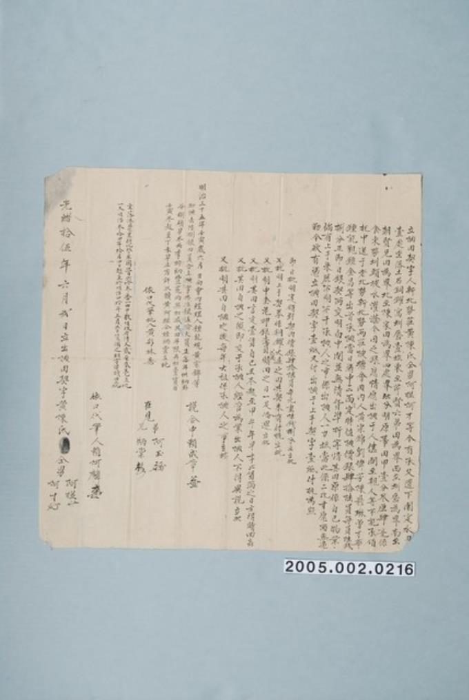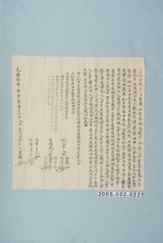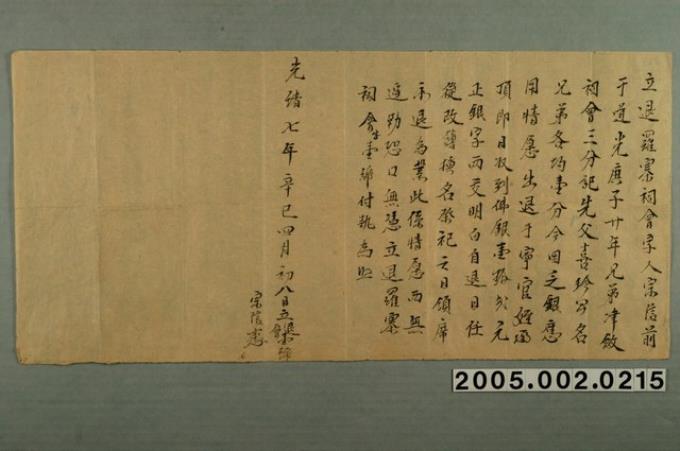 光緒16年鍾宗貴裔孫與賴永松子孫等立合同契字