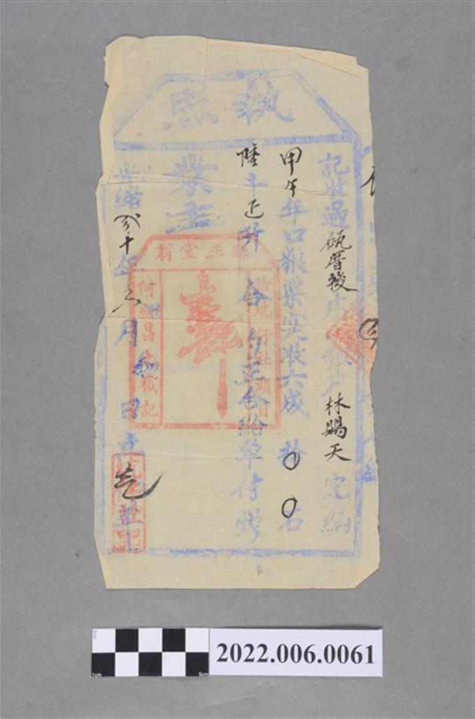 陳合成明治32年八里坌堡坑仔外社庄土地契尾