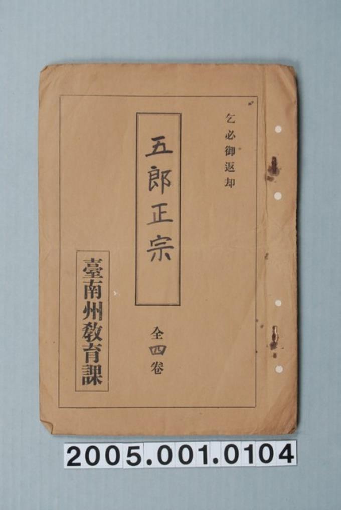 臺南州教育課核發影片「五郎正宗」准演執照