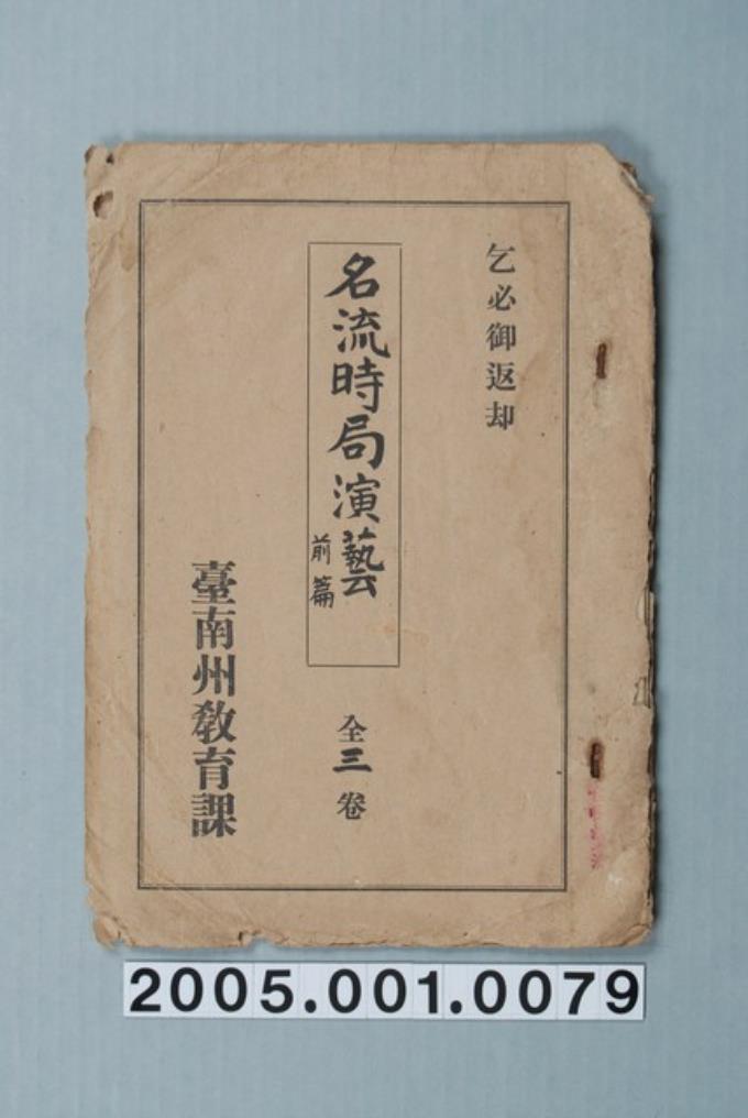 臺南州教育課核發影片「名流時局演藝前篇」准演執照