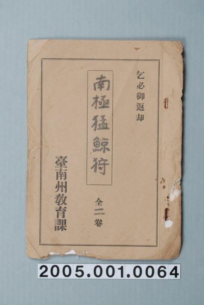 臺南州教育課核發影片「南極激烈的鯨魚狩獵」准演執照