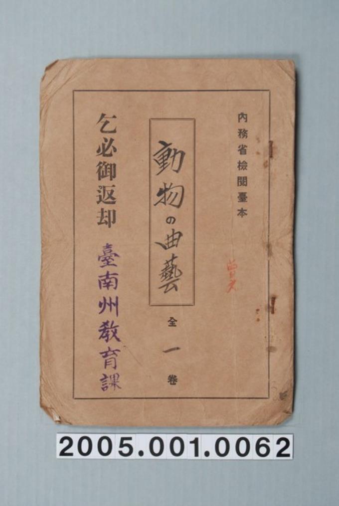 臺南州教育課核發影片「動物的好奇心」准演執照