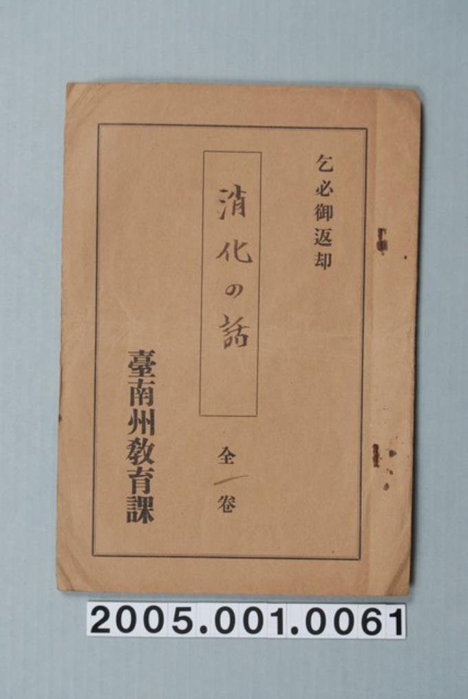 臺南州教育課核發影片「消化的故事」准演執照