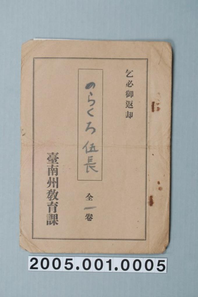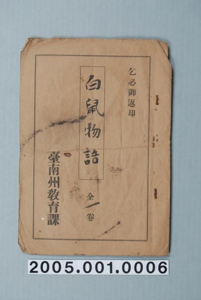 臺南州教育課核發影片「白鼠的故事」准演執照