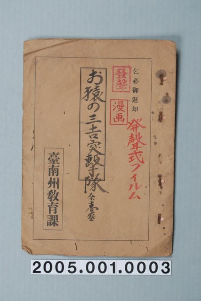 臺南州教育課核發影片「猴子三吉突擊隊」准演執照