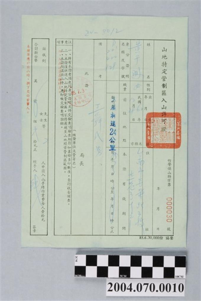 民國49年交通部臺北電信局發給謝力廣播收音機執照臺字第034797號