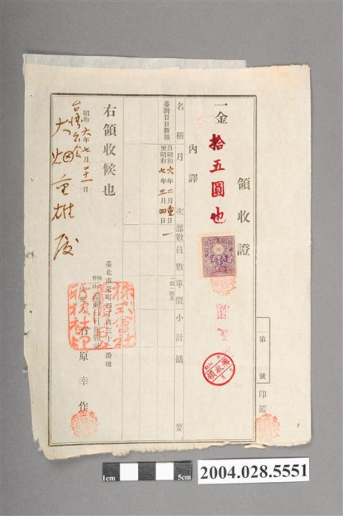 昭和6年株式會社臺灣日日新報社給大畑重雄收據