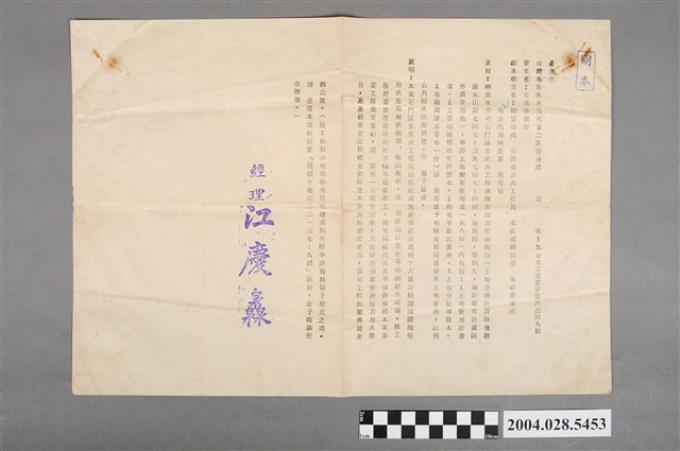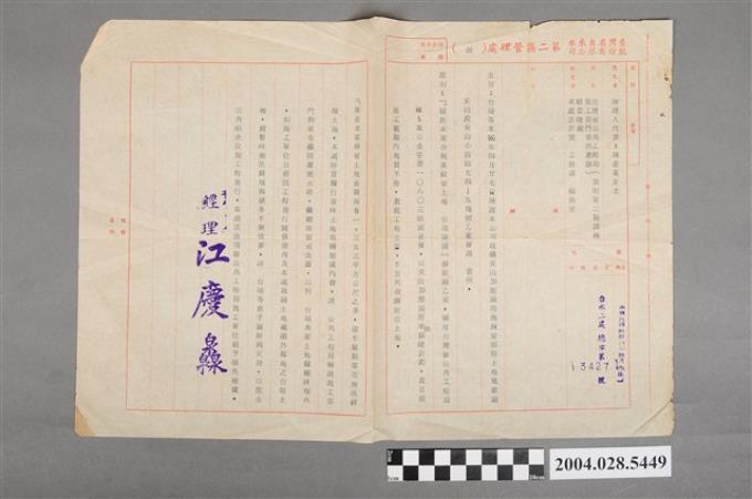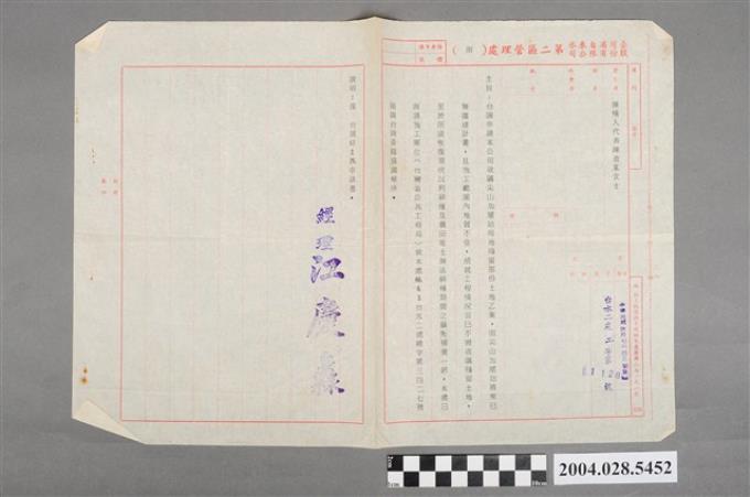 臺灣省自來水公司總管理處受文臺灣省自來水公司第二管理處陳查某等土地事宜函副本