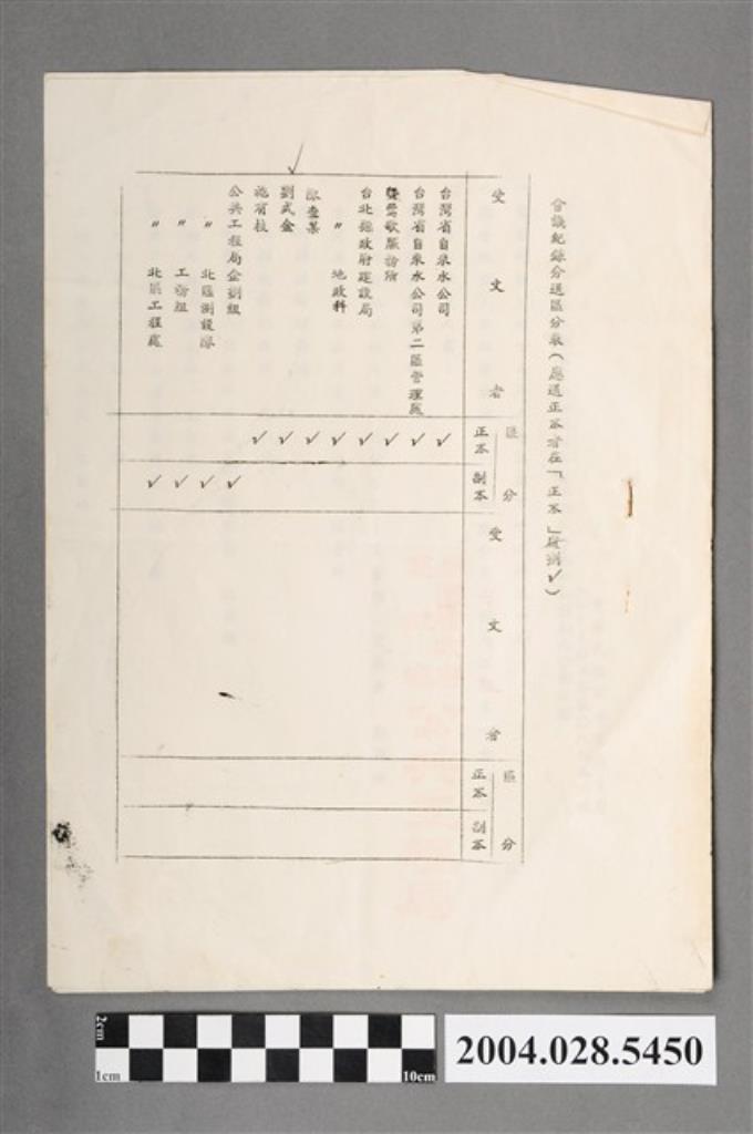 審計部臺灣審計處等人之臺灣省自來水公司第二管理處開會通知單