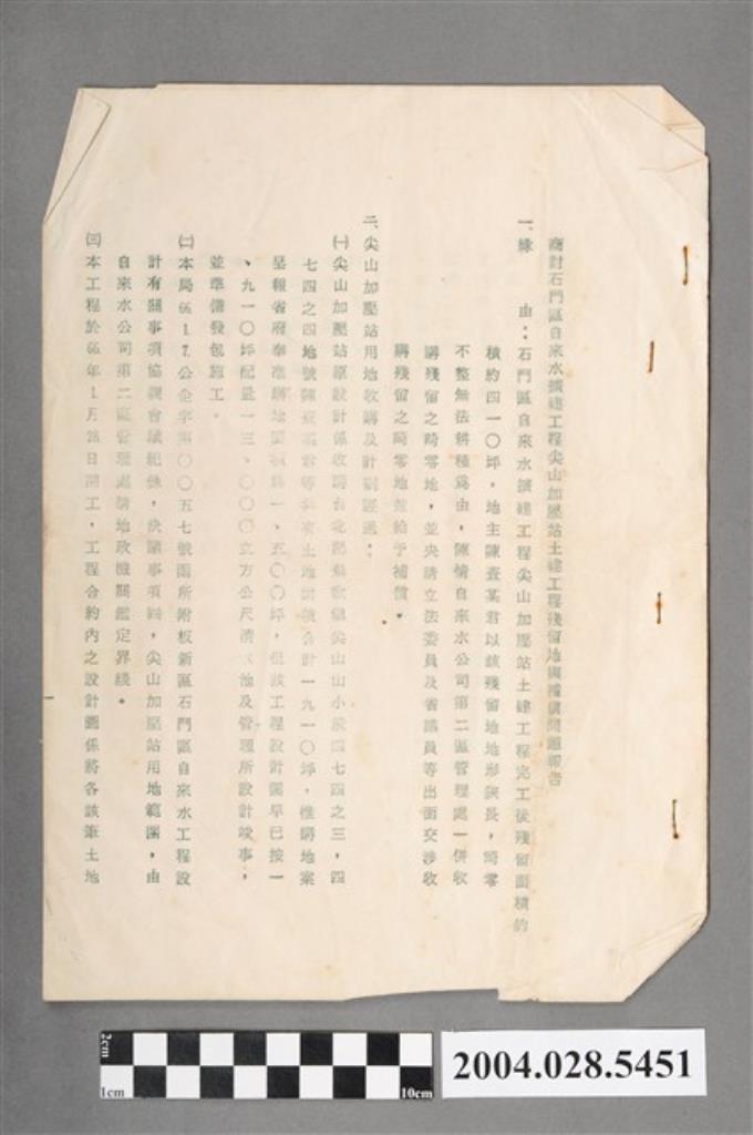 商討石門區自來水擴建工程尖山加壓站土建工程殘留地與補償問題報告