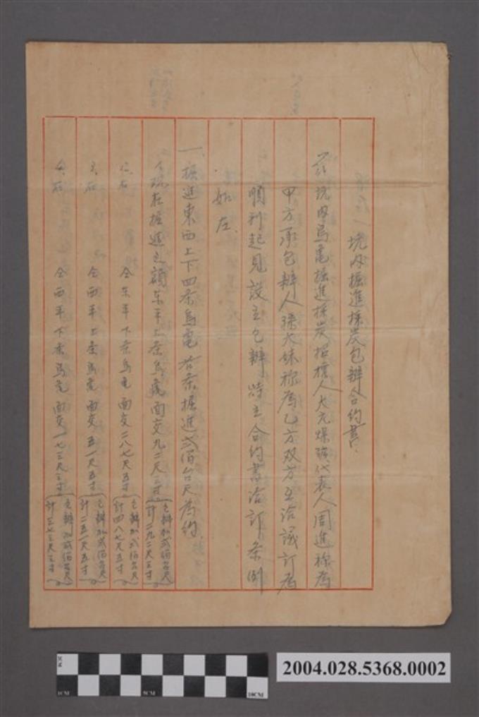 民國46年周進與孫大妹立坑內掘進採炭包辦合約書