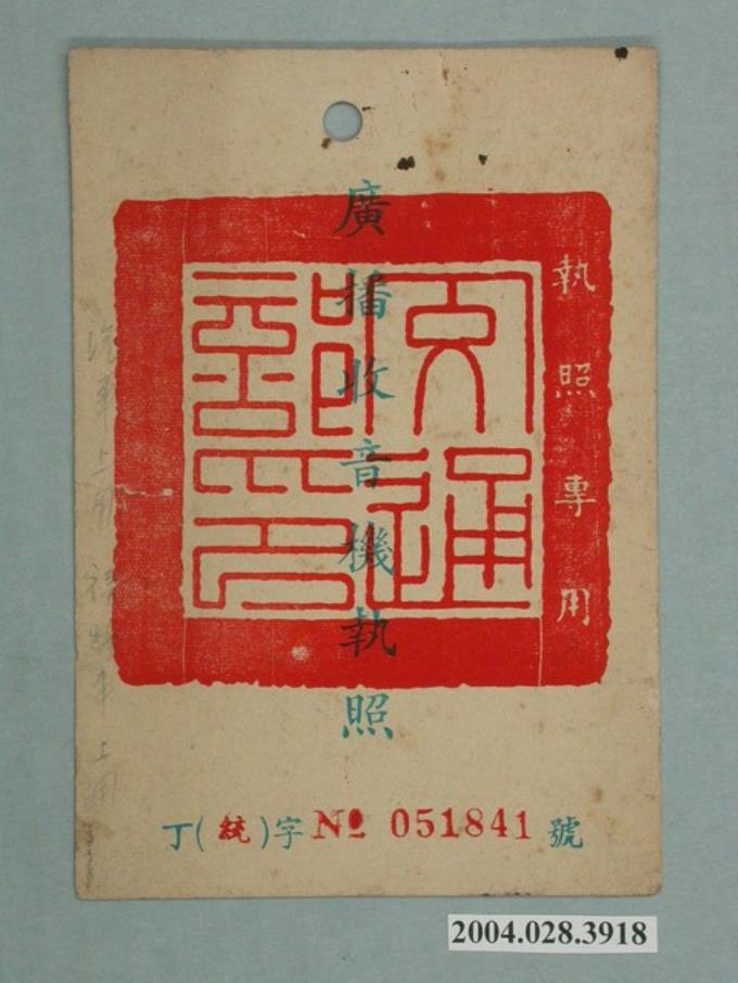 民國56年臺灣電信管理局發給公路局汽車訓練中心廣播收音機執照丁統字第051841號