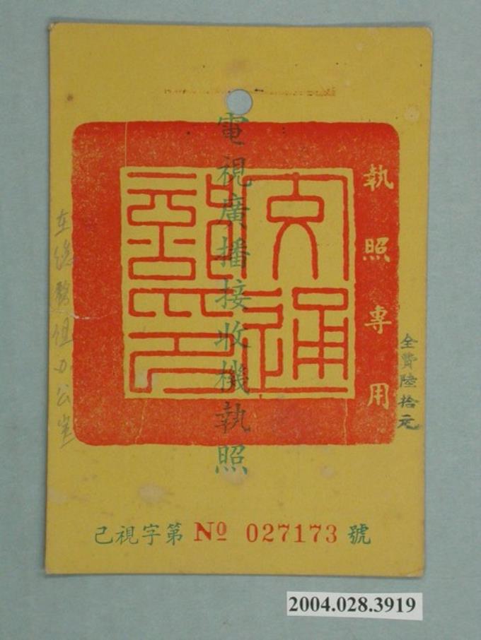 臺灣電信管理局代發公路局汽車技術員工訓練中心電視廣播接收機執照