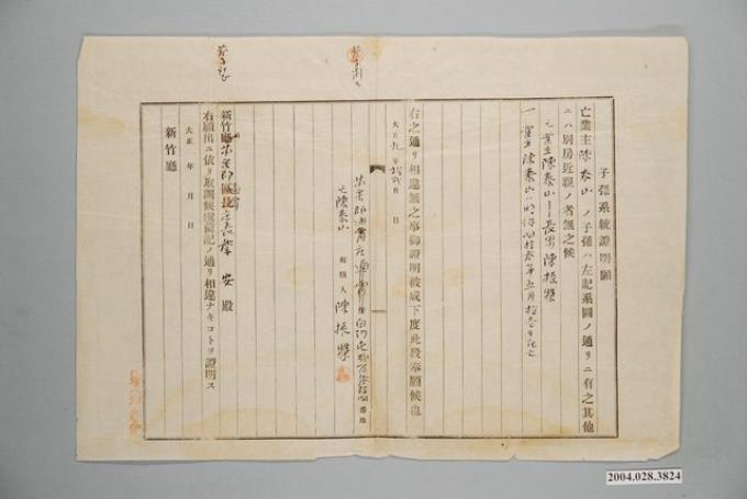 新竹州苗栗郡通宵庄白沙屯234番地戶主陳振榮戶口調查簿