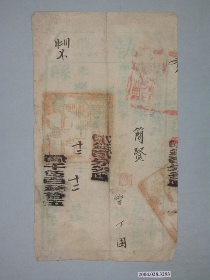 光緒19年臺灣府臺灣縣正堂給糧戶簡賢執照