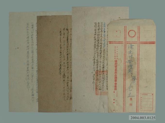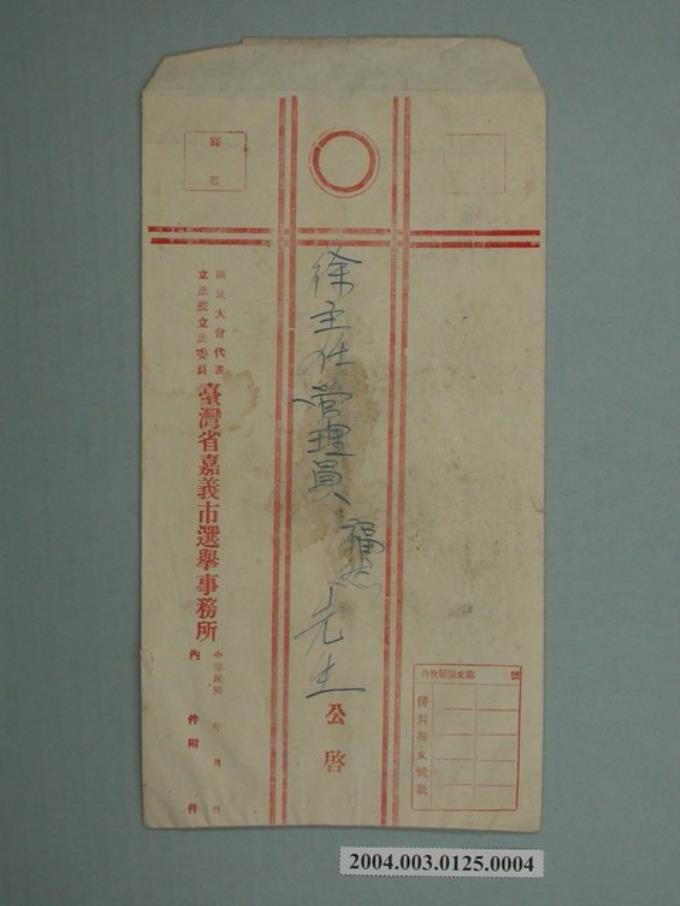 國民大會代表暨立法院立法委員臺灣省嘉義市選舉事務所寄送徐福然主任委員代電公文所用信封