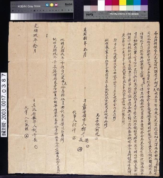 光緒8年馬芝保圳頭厝庄柯千德柯千長仝立胎借銀字