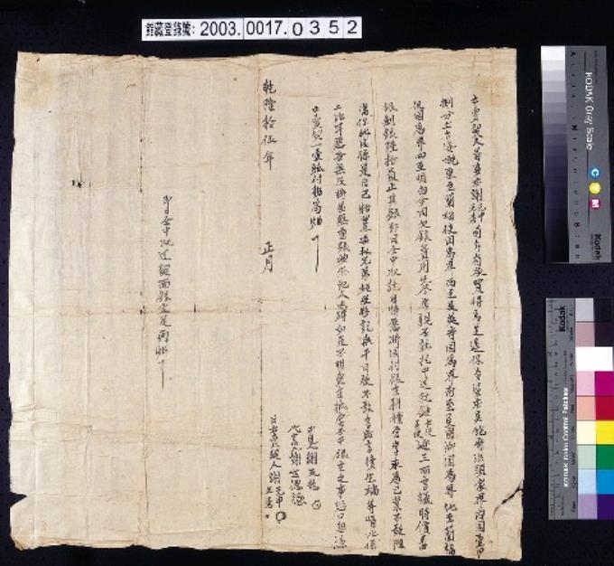 乾隆17年馬芝保番婆庄鍾文仁鍾文秀立賣斷契