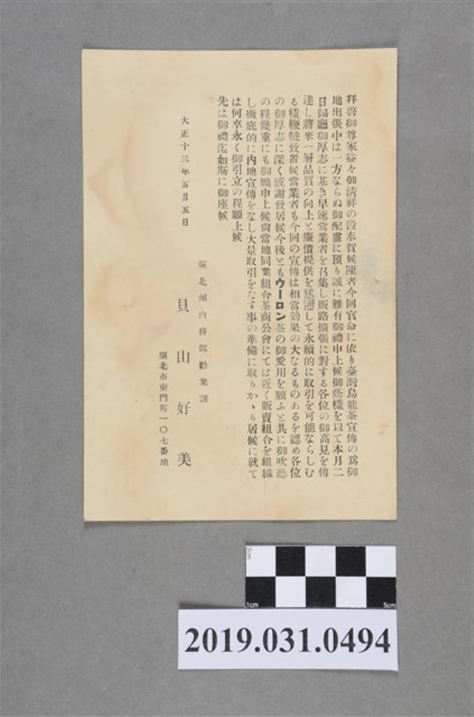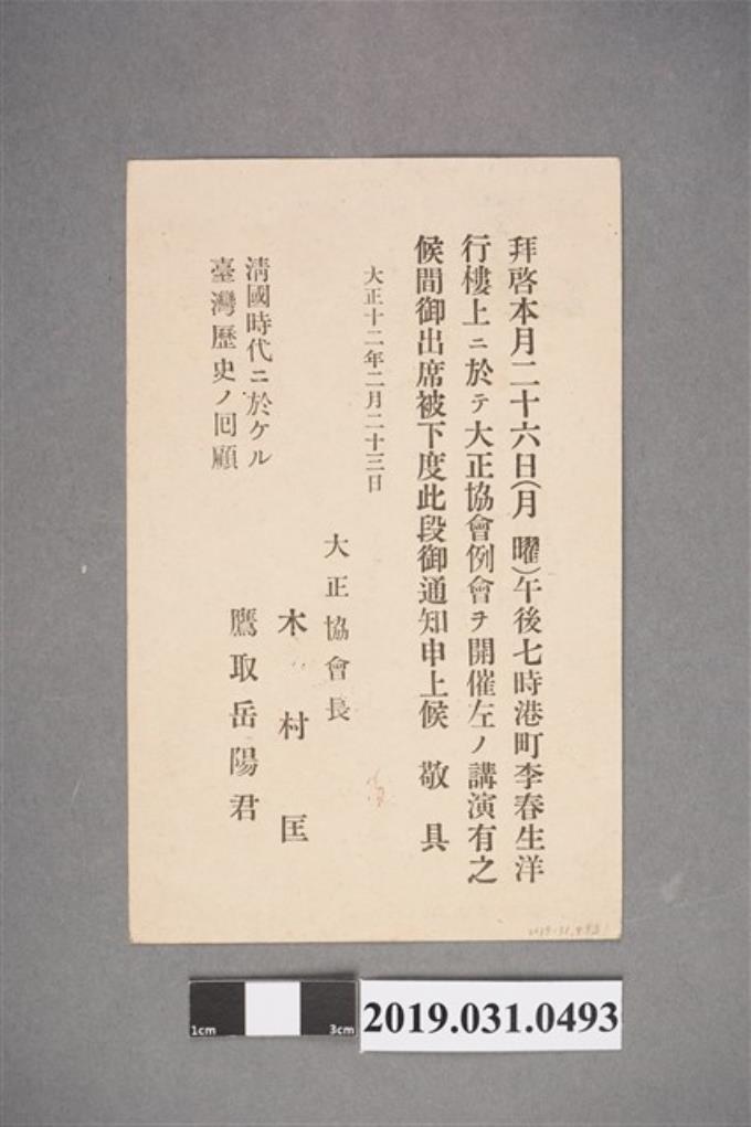 佐藤道代寄柯蔡阿李結婚賀卡回函之內容