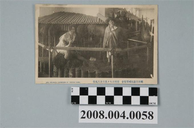 大阪備後町四栗本商店發行明治紀念拓殖博覽會臺灣原住民住宅及其風俗