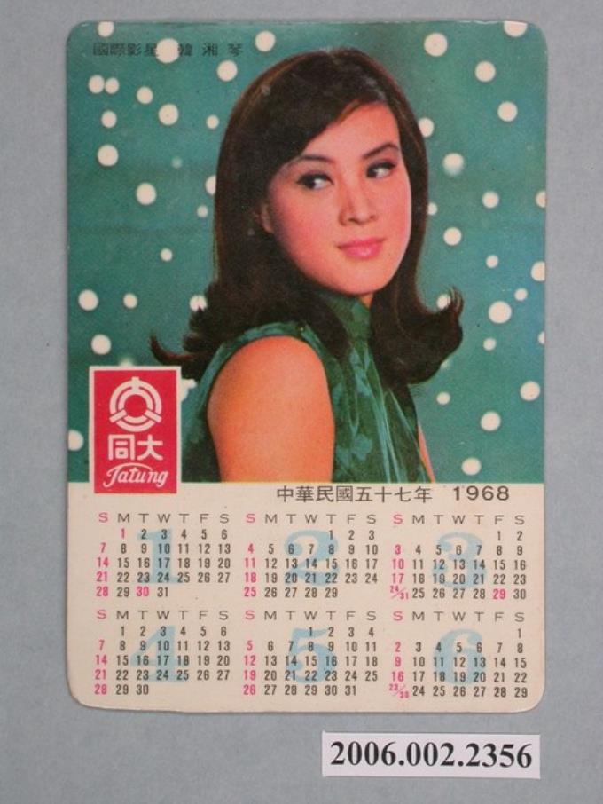 大同公司韓湘琴照片廣告年曆卡片