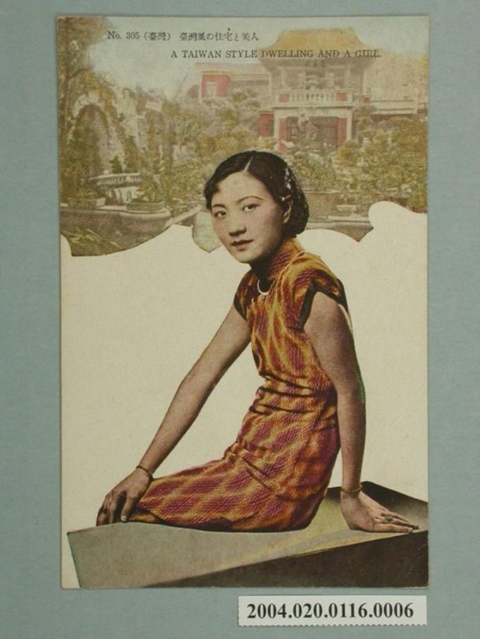 臺北生蕃屋本店印行臺灣美女於園中散步