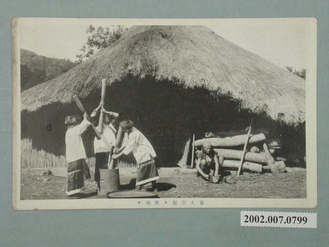 大正印製原住民聚落風俗悠然的搗樁聲