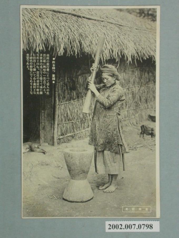 大正印製臺灣所見拿著杵的原住民婦人