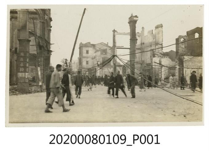 人群穿梭於破敗建築照