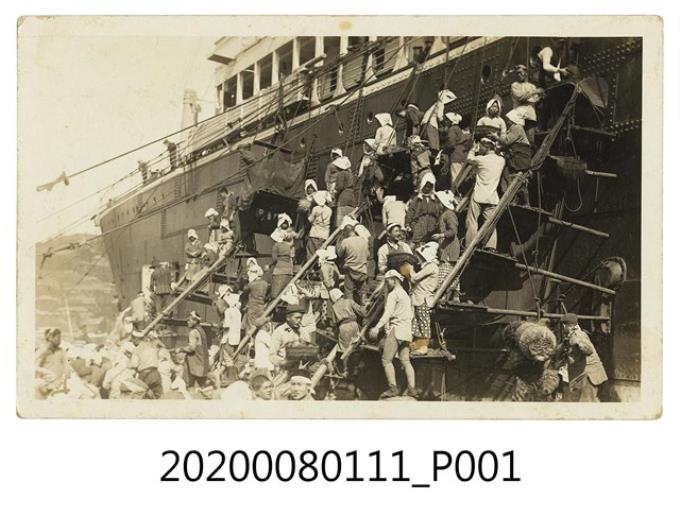 眾人從船上搬運物品明信片
