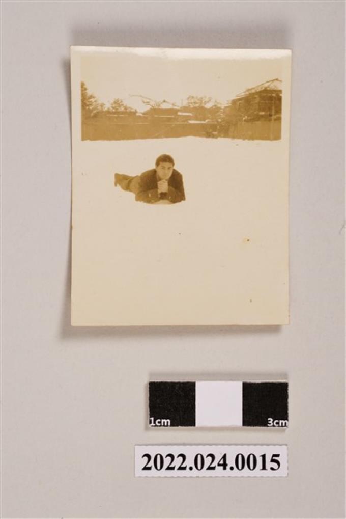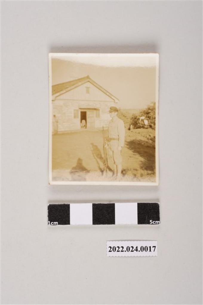 〈張子敬君朝陽下勇姿鷺沼廠舍演習紀念〉黑白照片