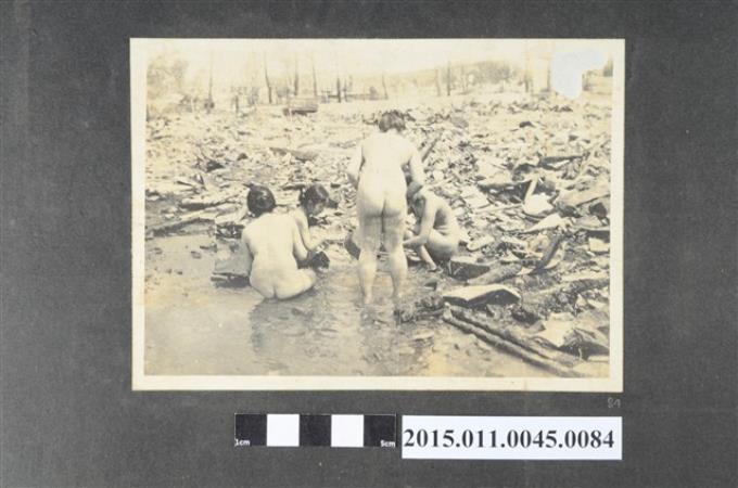 東京大地震災後找尋物品的裸身婦女