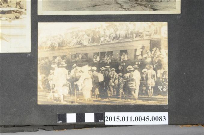 東京大地震後搭火車避難的人群