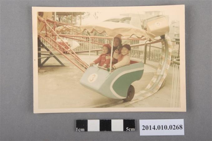 遊樂園設施中的親子合照