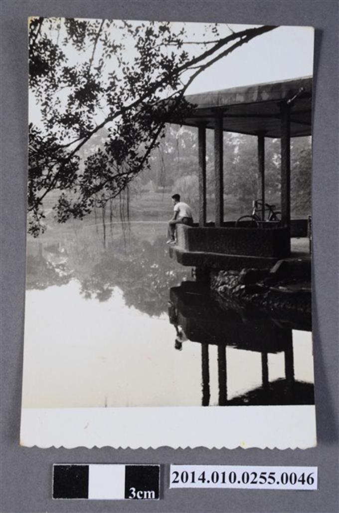 池畔亭下男子