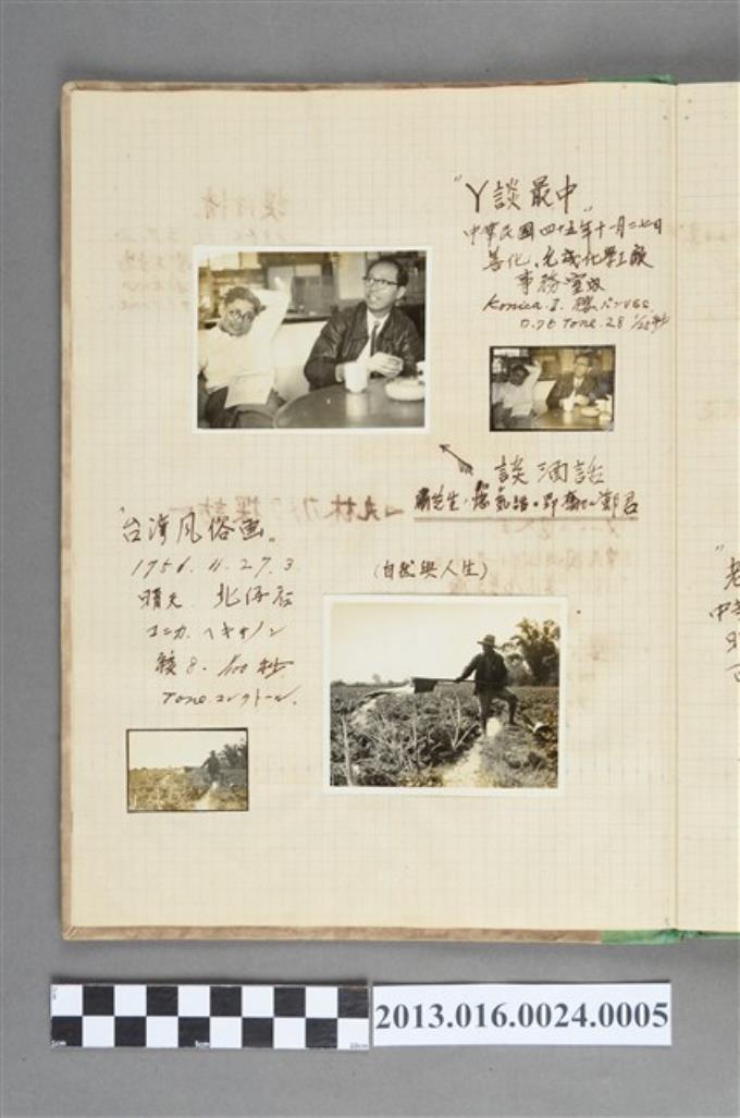 民國45年11月27日二男子於允成化學工廠事務室合照與農人於北仔店灑水照共4張