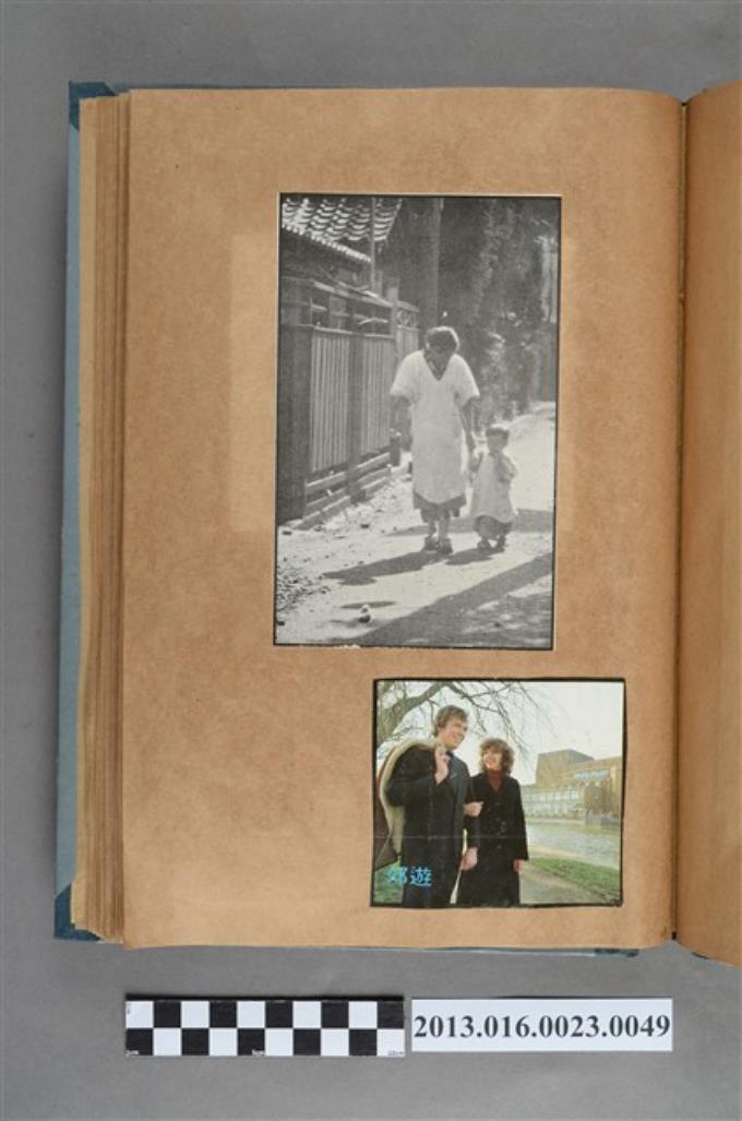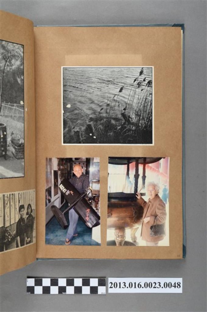 河畔剪報與陳崧波手持飛機模型以及陳崧波妻子於香爐前照片共3張