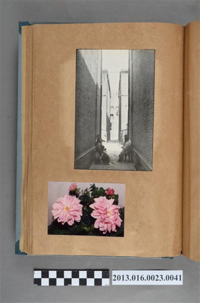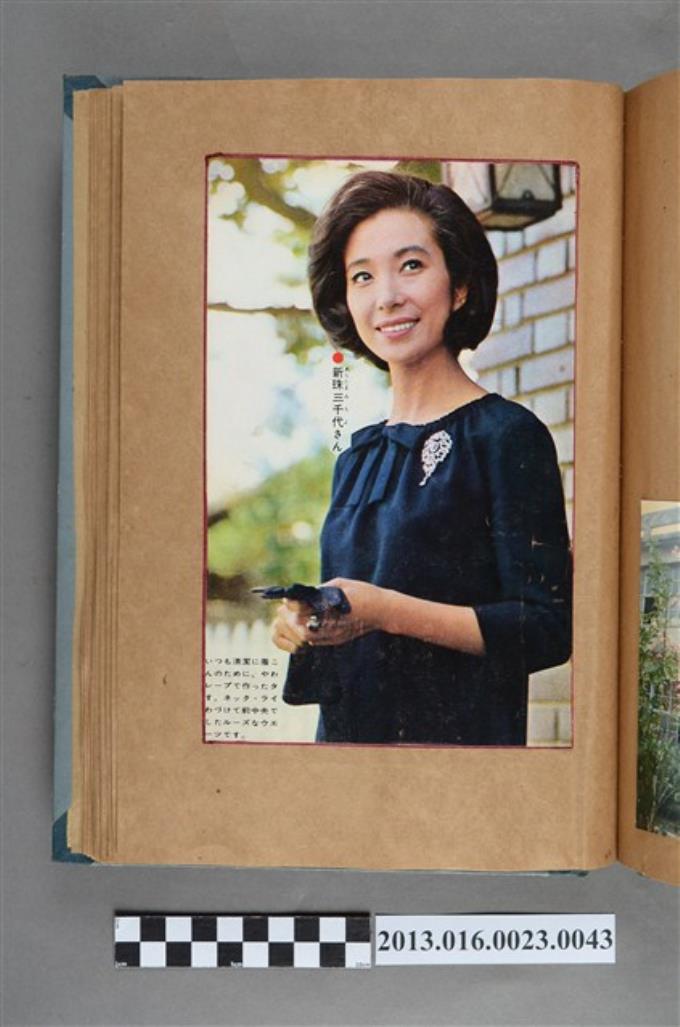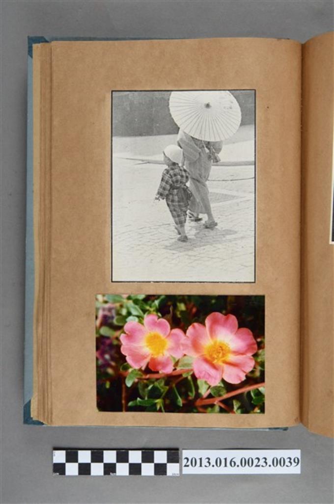 女性與幼童剪報以及花卉照